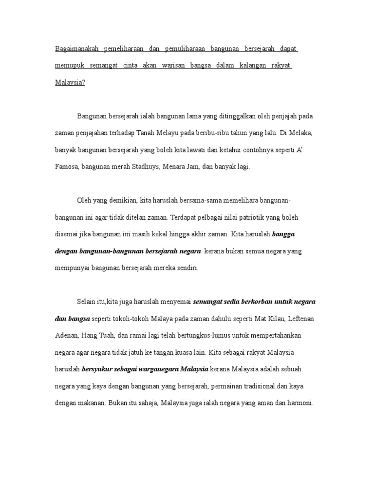 Langkah perdana bagi memelihara dan memulihara warisan sejarah adalah dengan menjadikan mata pelajaran sejarah sebagai mata pelajaran yang wajib bagi setiap. Mencadangkan langkah untuk memelihara memulihara bangunan binaan adalah merupakan salah satu isi kandungan yang perlu dihuraikan oleh. Ada beberapa hal yang dapat dilakukan dalam pemeliharaan perawatan penjagaan dan pemuliharaan perbaikan kembali stadium dan benda bersejarah lainnya.